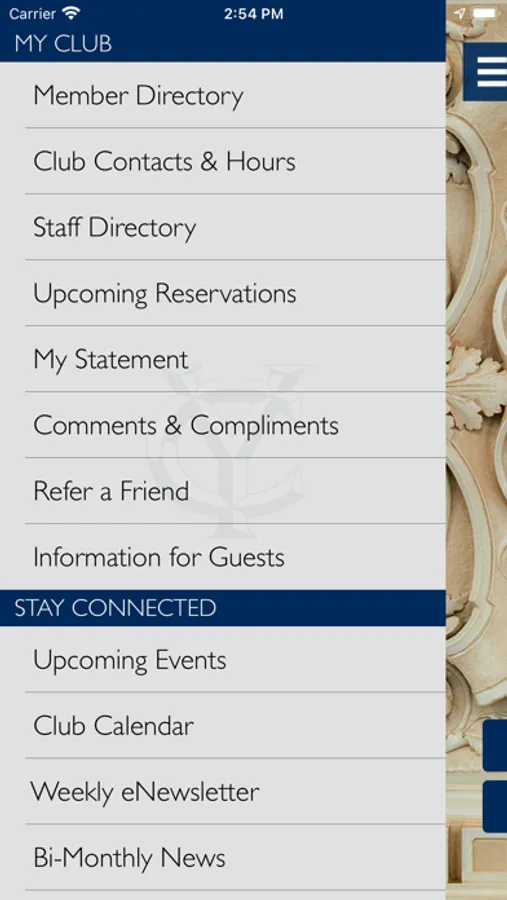 Welcome to The Yale Club of New York City’s custom app, designed to enhance your member experience inside the Clubhouse and beyond. With a touch of a button, you can make a reservation, contact staff, or view and pay your statement. Explore reciprocal clubs, view menus, or access your digital membership card. Browse the member directory, discover member benefits, and stay informed with the latest updates from the Club. We hope you enjoy the new, digital Yale Club experience.
