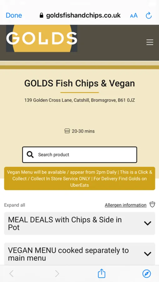 - Click & Collect from Golds Fish & Chips in Bromsgrove
