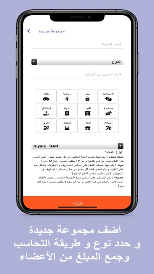 - قطة محددة : يتم تحديد المبلغ المطلوب من كل عضو و على أساس هذا المبلغ يحدد من قام بالدفع مع تسجيل المصروفات و المدفوعات و الرصيد المتبقي و عرضها لكل فرد منظم في المجموعة