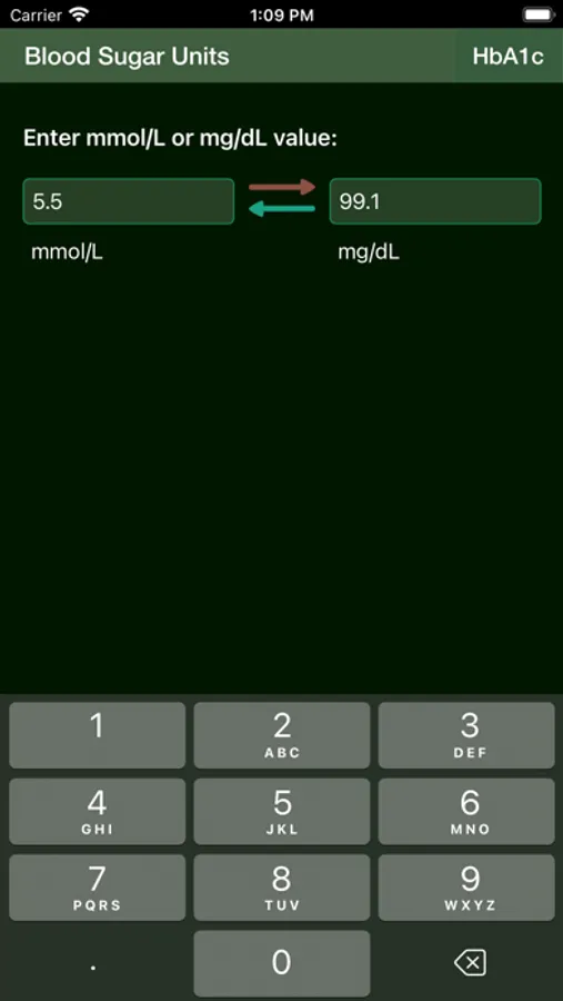 No fuss blood glucose unit calculator. Fast conversion from mg/dL to mmol/L and vice versa.