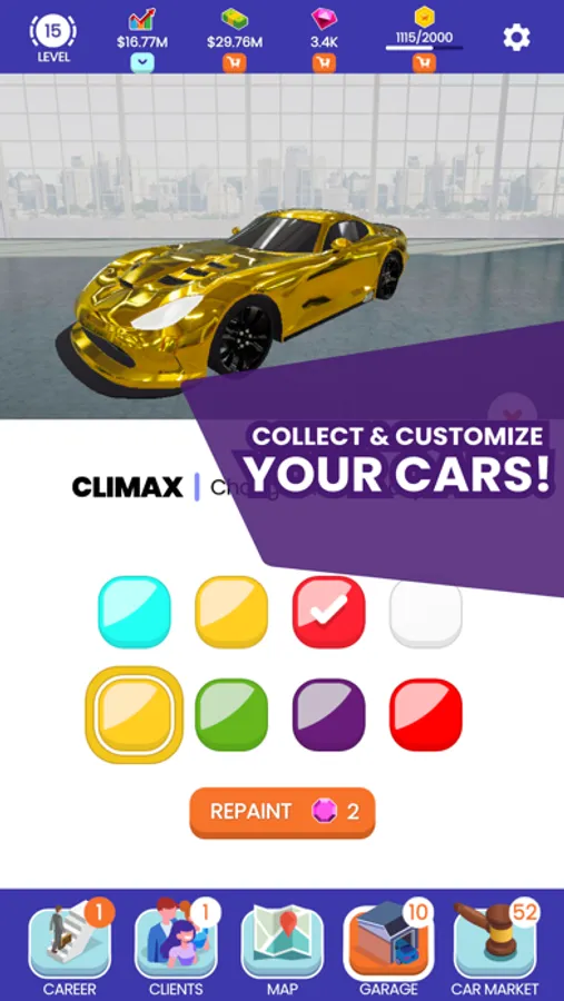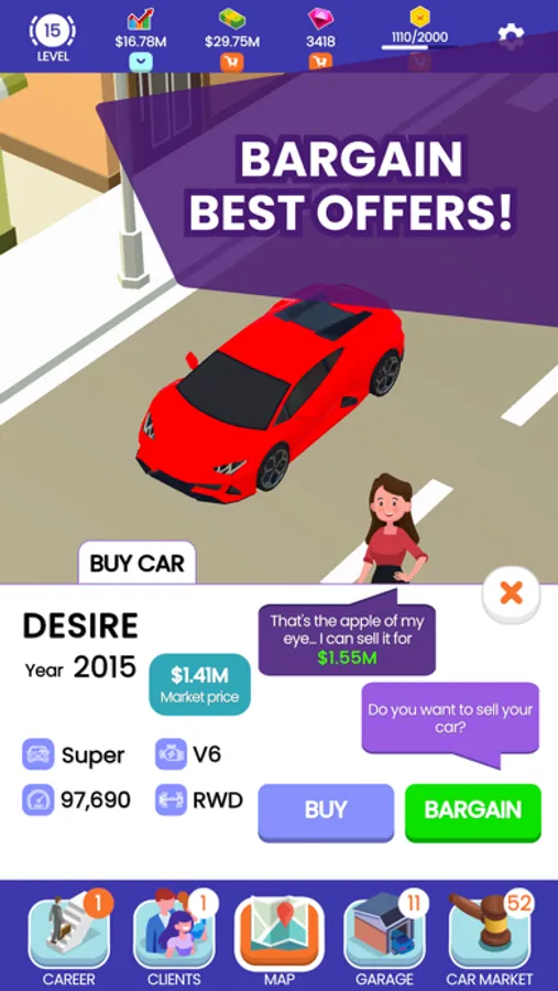 Throughout the game, you will have an opportunity to expand your business and build a car empire! Face many business challenges and learn entrepreneurship. Purchase rare cars, attract customers, negotiate with them, unlock facilities, and even organize classic car shows!