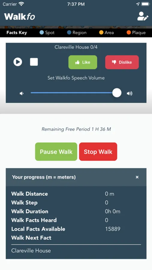 Our AI smart guide will learn about what the information you love, to focus on the facts that interest you as you walk around listening on AirPods, earphones or speakers. And you can help shape the future by liking and disliking facts to help Walkfo know even better what kind of facts people want to hear.