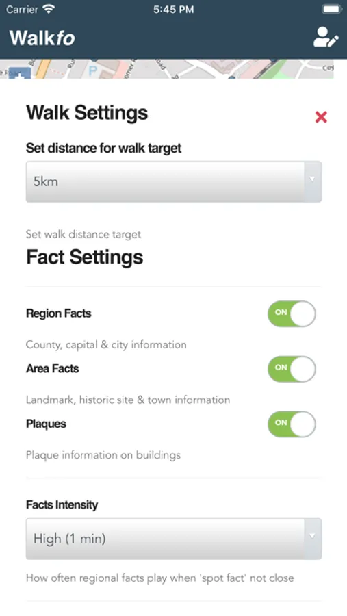+ Fact intensity: set how often you hear more general facts if you are not close to a 'spot'