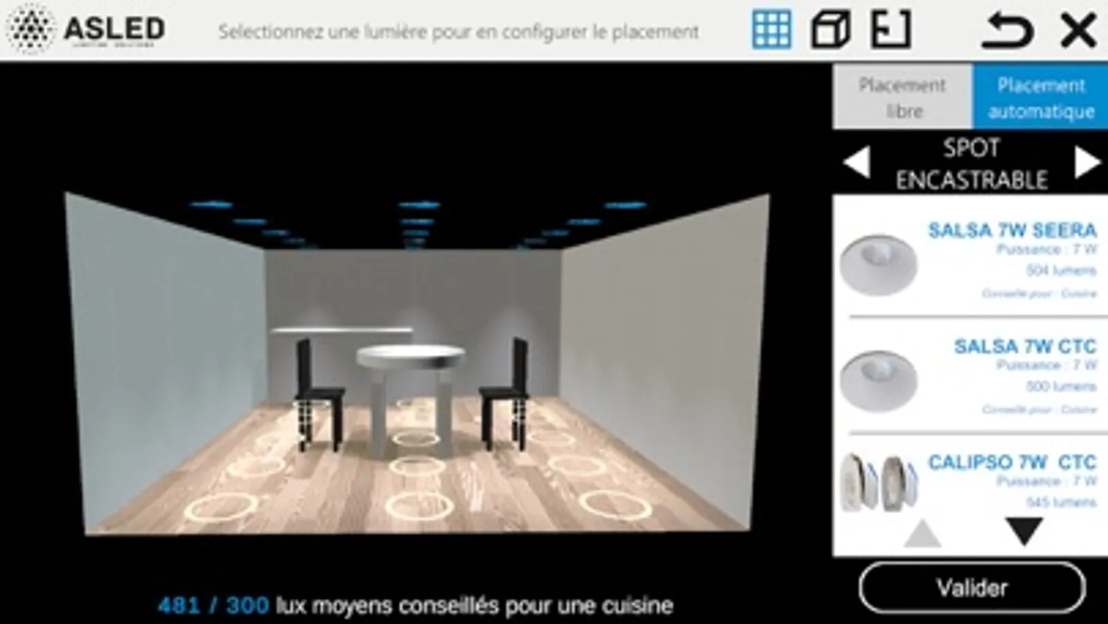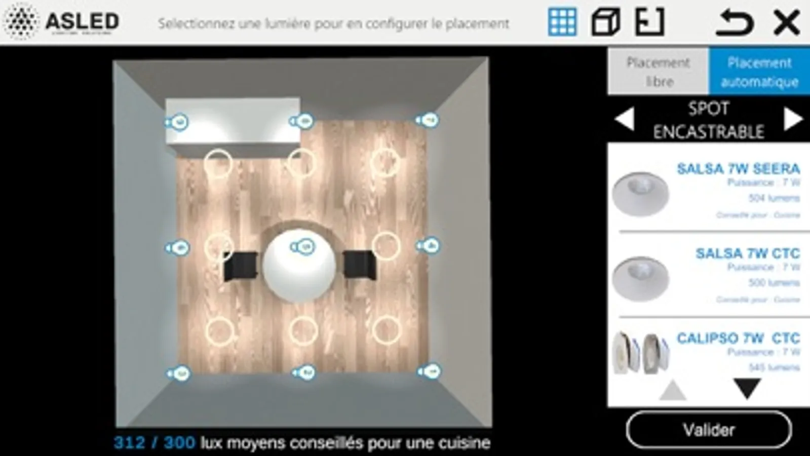 De plus grâce à son outil de gestion automatique de l’implantation des luminaires, vous disposez d’un plan d’implantation digne des conseils d’un professionnel de l’éclairage. Celui-ci tiendra compte de la destination de la pièce et optimisera votre future installation.