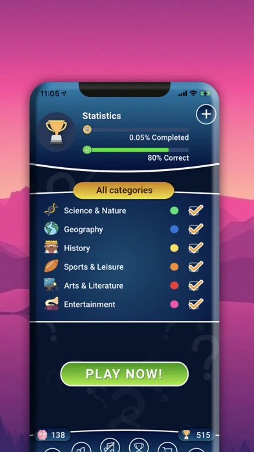 This trivia quiz game have a lot of statistics. You can challenge your family and friends.