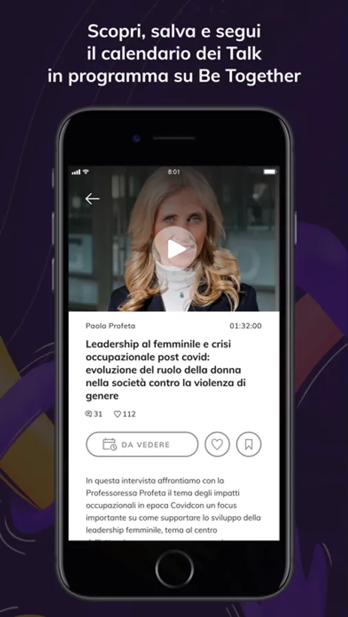 In risposta a questa urgenza, in cui i soggetti sono colpiti a livello psicologico, emotivo e fisico, all’interno dell’iniziativa “Costruire un Futuro per le donne vittime di violenza” (i cui promotori sono la ONLUS “Per Milano “ e l’”Associazione Fondazione di Comunità Milano”) il Gruppo “Be | Shaping the Future” ha voluto creare con l’APP “Be Together”, uno strumento che metta a disposizione il palinsesto dei talk organizzati con i principali esponenti alla lotta contro la violenza di genere per riflettere sull’argomento e sviluppare le possibili strategie di contrasto al fenomeno.