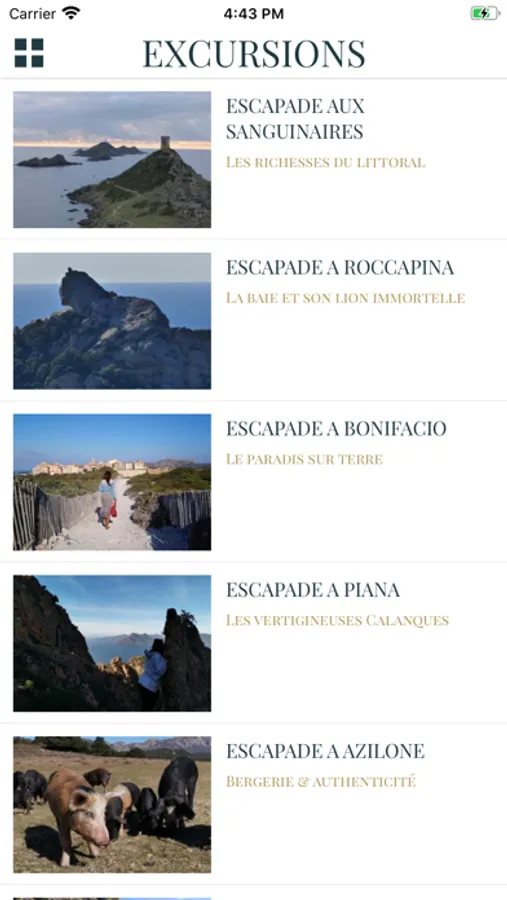 • Découvrez le meilleur de la Corse en quelques clics sur votre smartphone! Consultez notre guide de voyage avec fonction de géolocalisation (GPS). Les bonnes adresses sur une carte de la Corse interactive! Un panel d'activités et attractions incontournables et des bons plans hébergements et restauration. Préparez vos vacances dans l'île de beauté! Planifiez votre séjour touristique à l'avance et en fonction de vos besoins. Vivez une véritable aventure et des moments inoubliables dans toute la Corse.