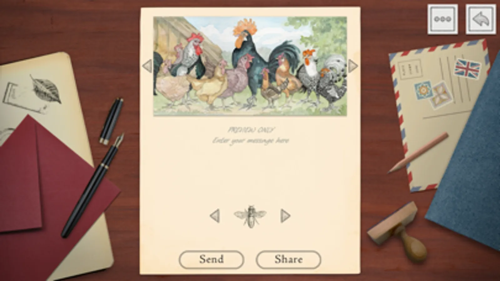 ● Send beautiful ecards to your family and friends from your very own writing desk within the app.