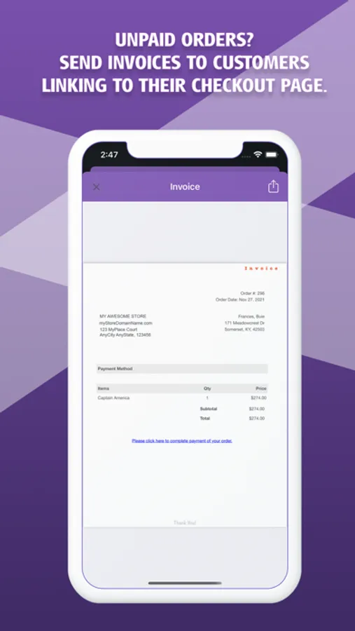 WooCommerce owners can also create new orders on behalf of their customers and process transactions. This is particularly useful for store owners who own brick-and-mortar stores, perfect for retail stores, market stalls, vendors and more. No need to buy additional equipment to process orders. Simply create an order. The order will return from their WooCommerce database as "Pending Payment" at which time they can scan their customer's card or manually enter the information.