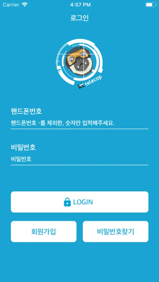 - 응급신호 접수 시 KT텔레캅 종합상황실과 보안요원에게 이용자의 GPS 신호를
