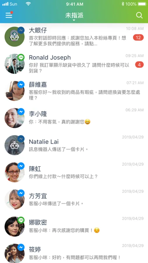 您可以透過訊息關鍵字、或是顧客名稱關鍵字搜尋快速找到相關客戶資訊。