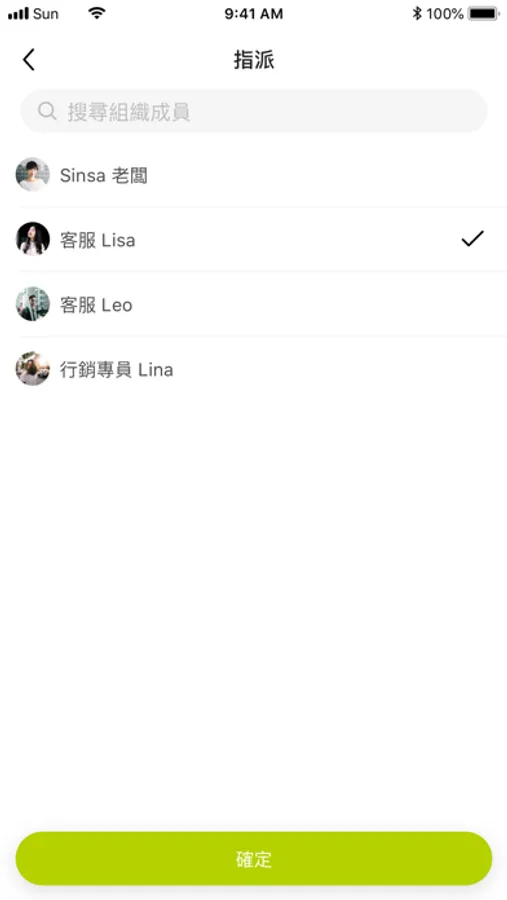 將訊息分派給指定的組織成員,系統會自動通知該成員,讓每一則客服問題都被有效分類與管理。