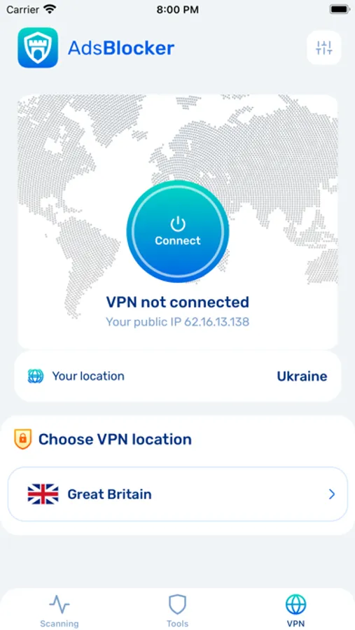 AdBlox VPN is a lightning-fast app provide free VPN service. Not need any configuration, just simply click one button, you can access the Internet securely and anonymously.
