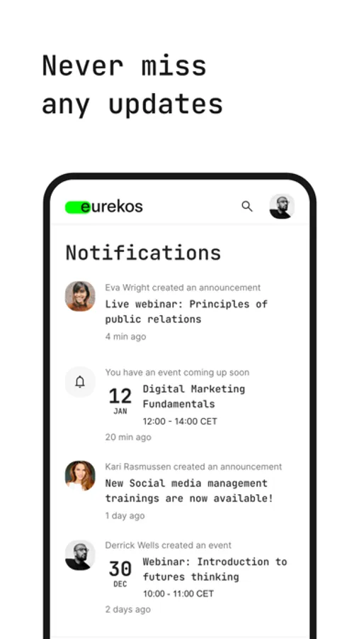 The Eurekos mobile app is the perfect complement to your desktop learning. Your training, videos, tests, certificates, and much more are easy to access from your phone, even with no internet connection.