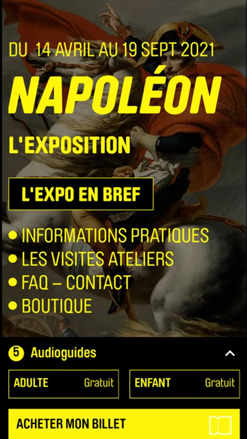 -toutes les informations nécessaires à la visite (infos pratiques, accès à la billetterie, visites-guidées et ateliers, boutique en ligne…), une présentation de l’exposition, un parcours chronologique : « L’exposition en détails » et un parcours en audiodescription pour les personnes malvoyantes.
