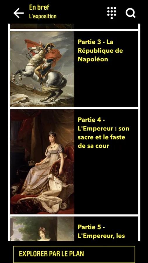 Les œuvres y sont reproduites et localisées sur le plan de l’exposition. Les commentaires sont en mode audio et retranscrits pour les versions françaises.