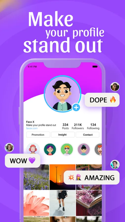 Create a brand-new awesome avatar in a few taps! Choose from a variety of styles to make a unique profile pic.
