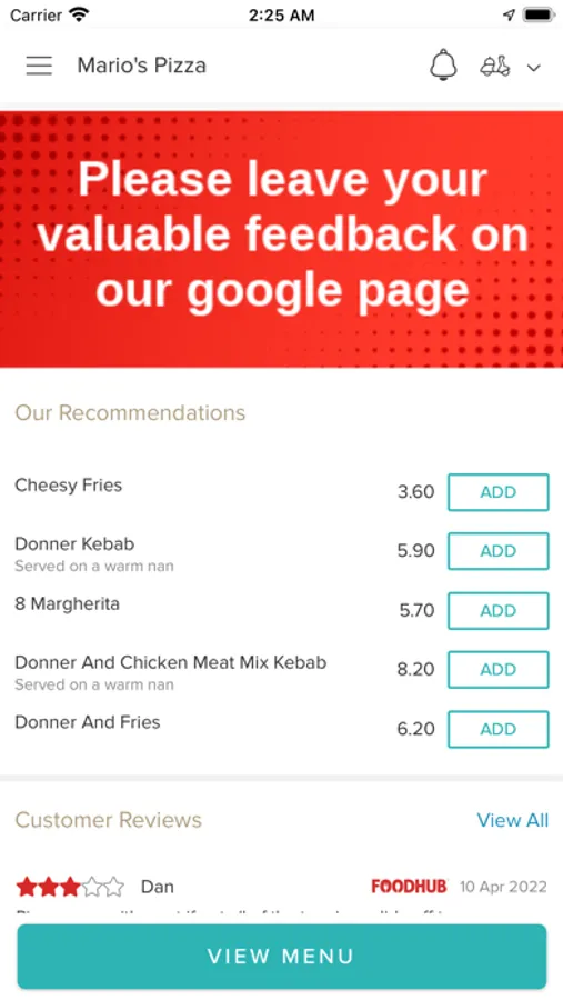Thank you for visiting Mario's Pizza in Eastwood. We hope you enjoy our online ordering app and your food.