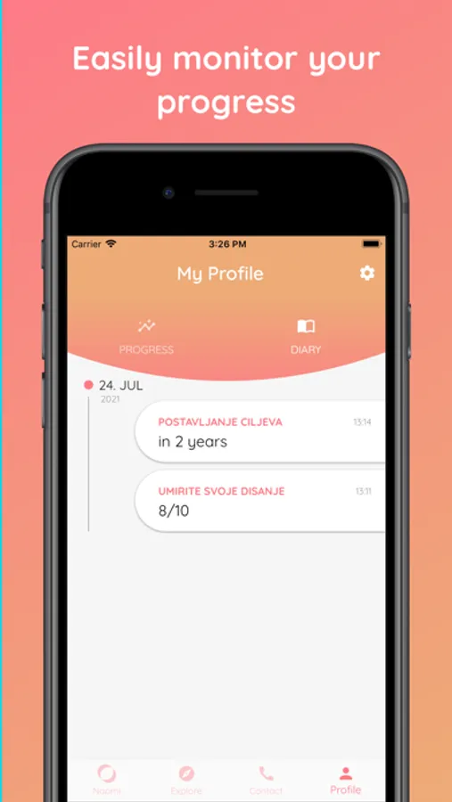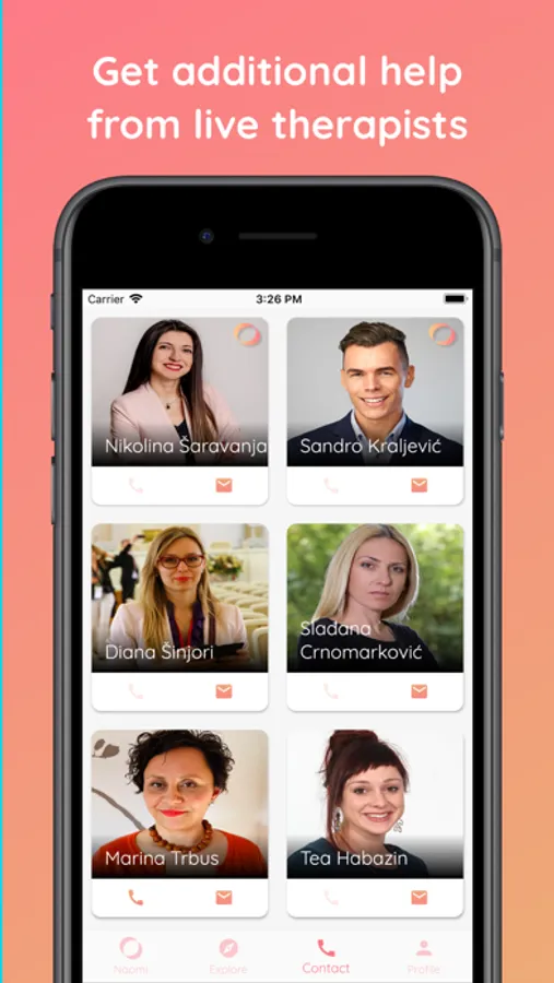 Since in some situations additional help from a psychotherapist is needed, NAOMI took care of that as well. In the Contacts tab, you can find contact information and descriptions of available psychotherapists in multiple European countries, available for both online and live sessions.