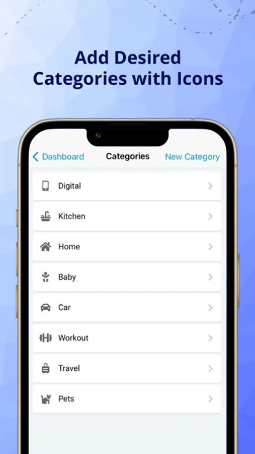 Group your assets into different categories of your choice and personalize them with icons. Also, you can export your data to use outside the app or send it anywhere you want.