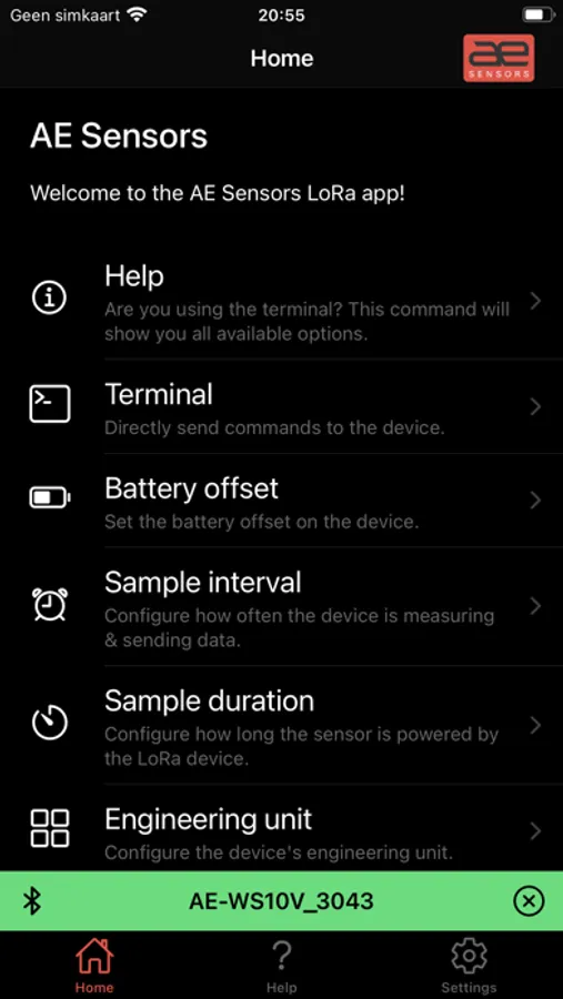 App for customers and employees of AE Sensors. With this app, you can connect to AE Sensors' LoRa sensors through Bluetooth Low Energy (BLE). Next to that, commands can be sent to the the devices, as well as starting measurements and reading different kinds of data.