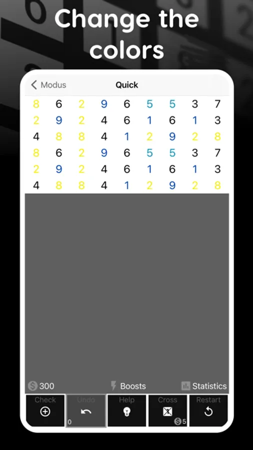 - "Help": Have a possible combination shown or get the info that there are no more number blocks that match
