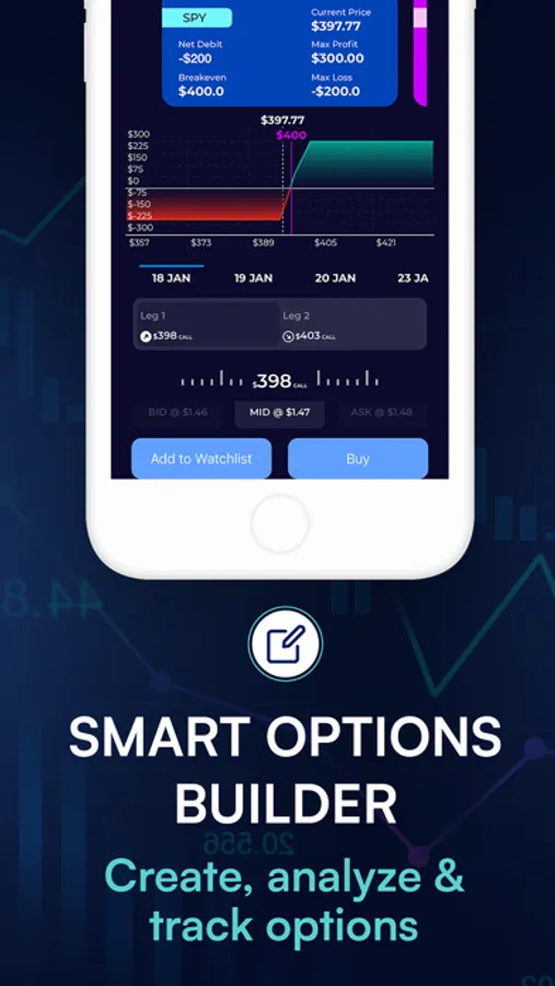 Do not fear options trading & meet your investment goals with UpLeg. The app’s user-friendly interface can make it easier for traders to navigate the options trading platform and access the various features and tools available Toggle easily between past, present & future strategies on your Wishlist to evaluate & compare your options. Check out pre-built strategies & possibilities on each holding in just a few taps!