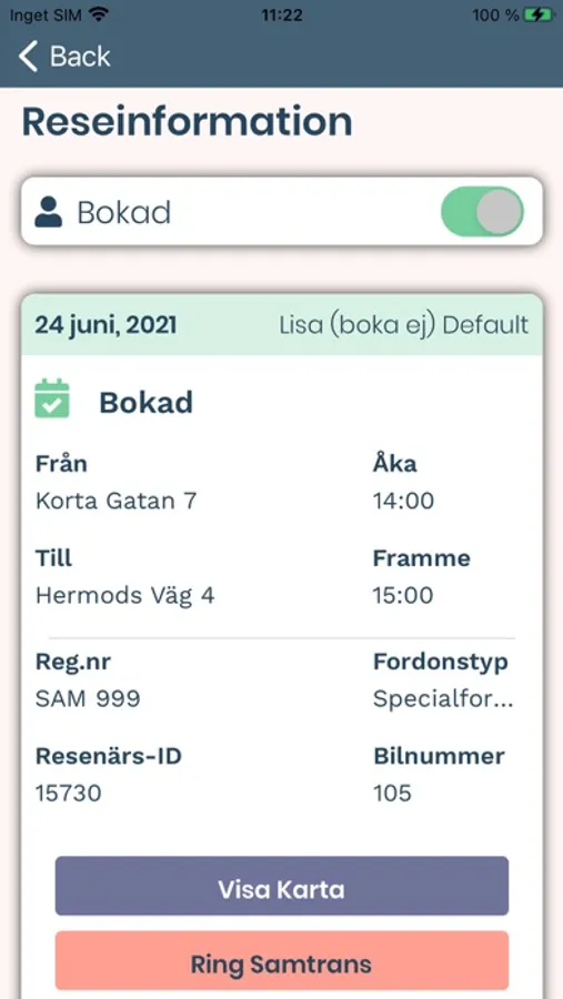 Samtrans Resor är till för dig som redan är kund hos Samtrans och som åker turbundna resor (t.ex. arbetsresor) eller som är anhörig till en person som åker turbundna resor (t.ex. skolskjuts). I Samtrans Resor kan du bland annat se vilka tider en resenär med turbundna resor ska åka respektive vara framme. Redan beställda resor kan av- och påbokas.