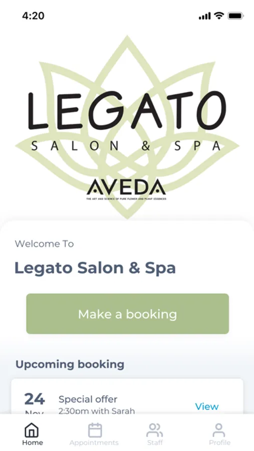 The Legato Salon & Spa app makes booking your appointments and managing your loyalty points even easier. You're just a few taps away from feeling good and looking great!