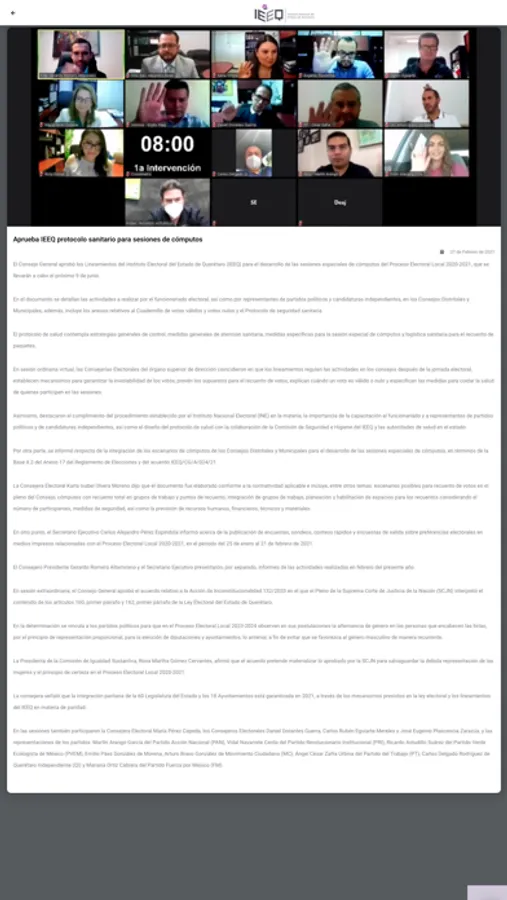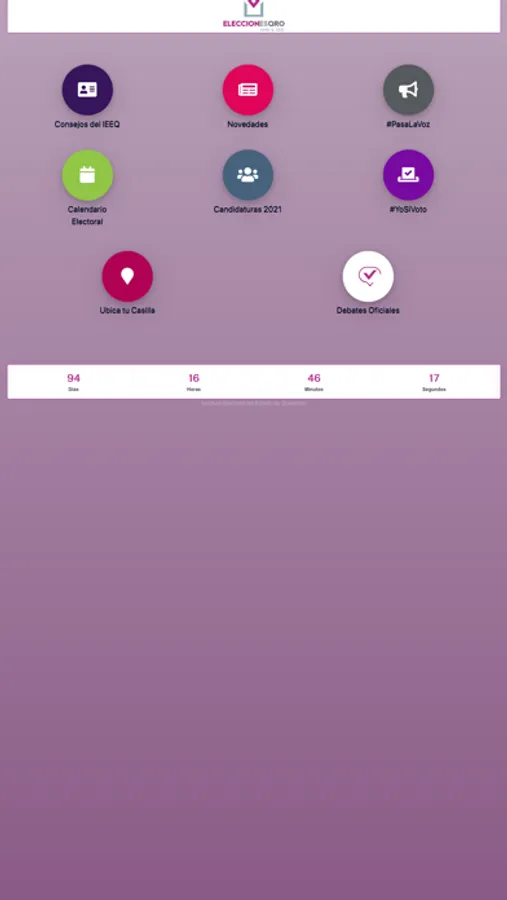 La aplicación EleccionesQro, te dará acceso a información sobre el proceso electoral local 20-21 en la entidad de Querétaro; Permitiéndote visualizar noticias, calendario de actividades, diversa información que podrás compartir con otras personas, también encontraras la ubicación de los consejos distritales y municipales que están distribuidos en la entidad