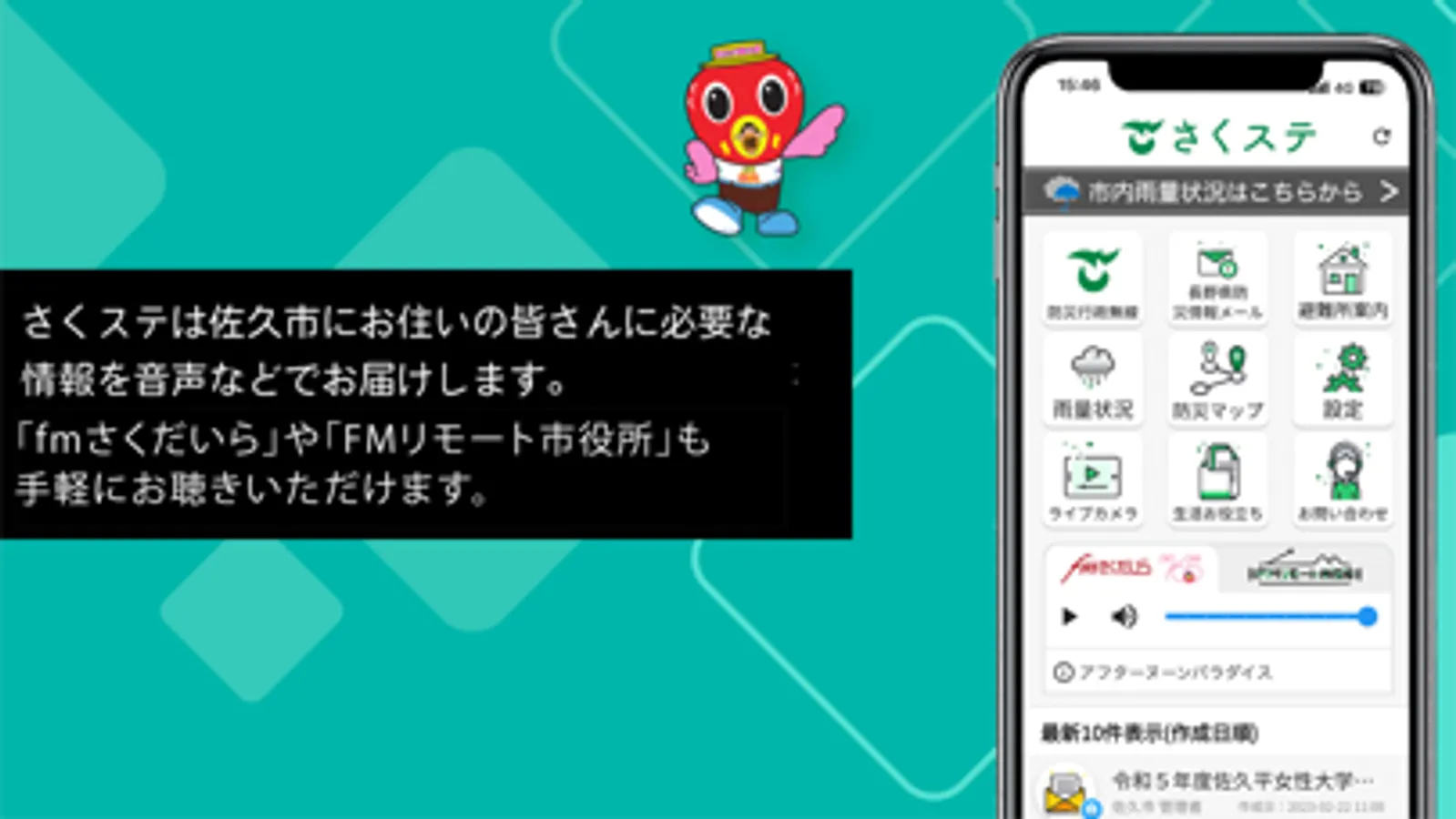 ◆音声コンテンツ聴取機能を強化!普段づかいで地域のFMラジオ局「fmさくだいら」と佐久市の運営するPodcast番組「FMリモート市役所」を聴くことができるようになりました。