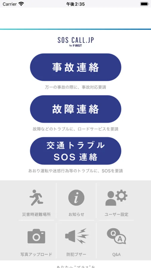 ⑥写真アップロード機能:事故や急病などで、コールセンターに分かりやすく情報を伝えるために、その場で撮った写真をアップロードできます。