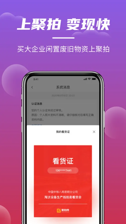 聚拍网(www.jupai.net) 处置废旧物资、闲置物资、二手设备等,竞买群体高达数百万人,平台拍卖内容主要涉及金属类、设备类、固废类、危废类、机动车类等,为广大客户提供高效的闲置废旧物资、二手设备、机动车等物资的在线交易,使物资交易更加公开、公平、公正、阳光。