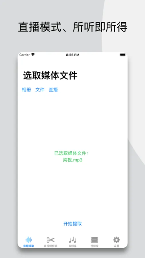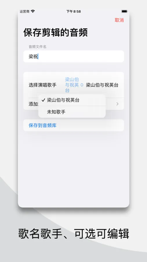 关于音频的提取,从文件也好,相册也好,直播也好,都能顺利从相册视频,文件视频或直播生成的文件提取出音频。您可以命名音频文件的名字和分类,也就是歌曲名和歌手名。