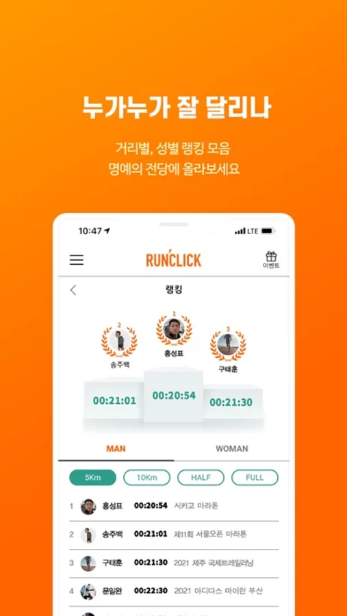 그리고 대회 거리별, 성별 랭킹 모음이 궁금하시다구요?