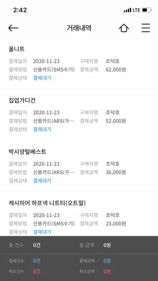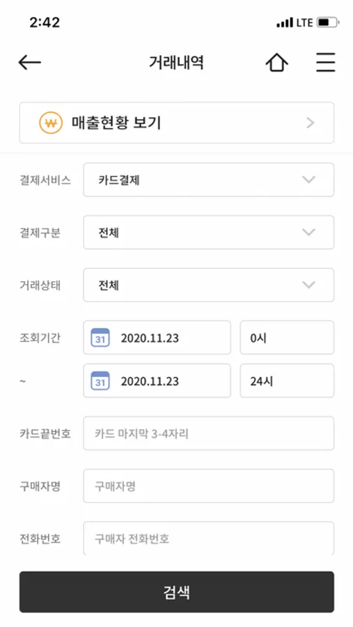 * 거래형식 별, 기간 별 조회 기능 제공.