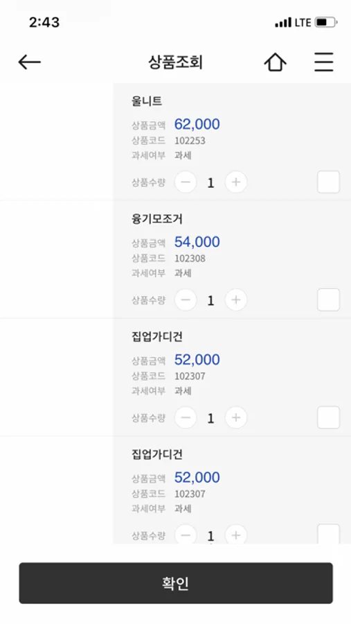 * 어플리케이션 내 상품리스트를 등록하여 조회 가능.