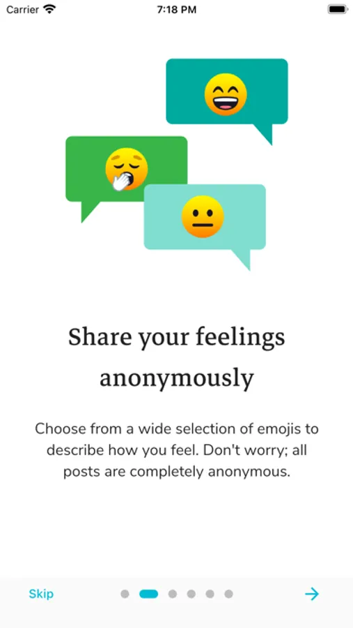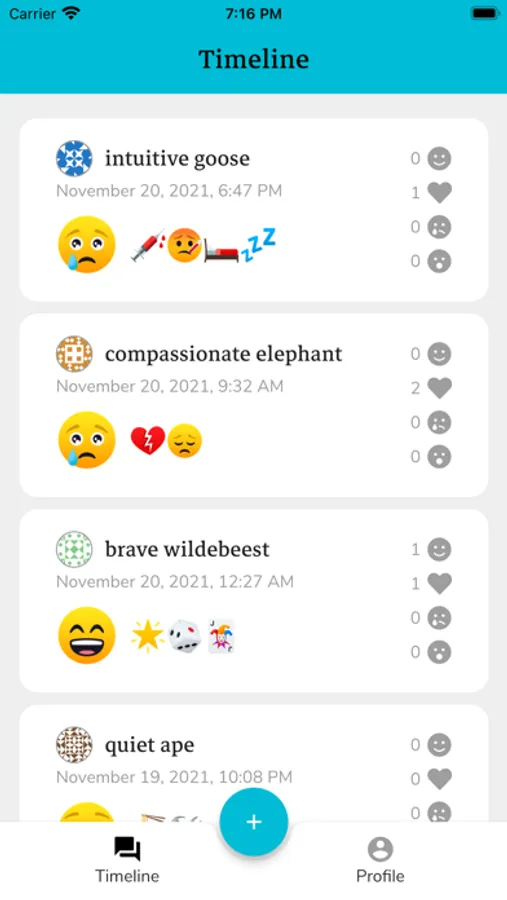 Share your stories as often as you want! Your account is anonymous, post freely and let the world know how you’re feeling. Get supportive reactions from other users and give support back with your own reactions!