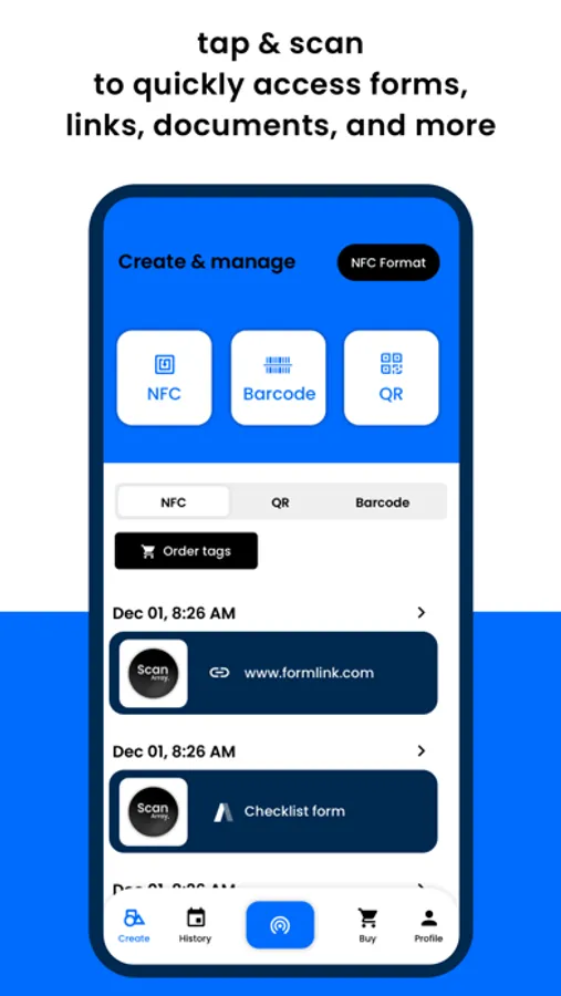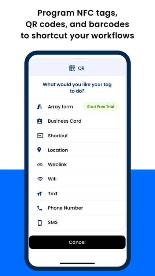 The Scan app, powered by Array, can quickly read and write to any NFC tag, QR code or barcode via a user-friendly interface.