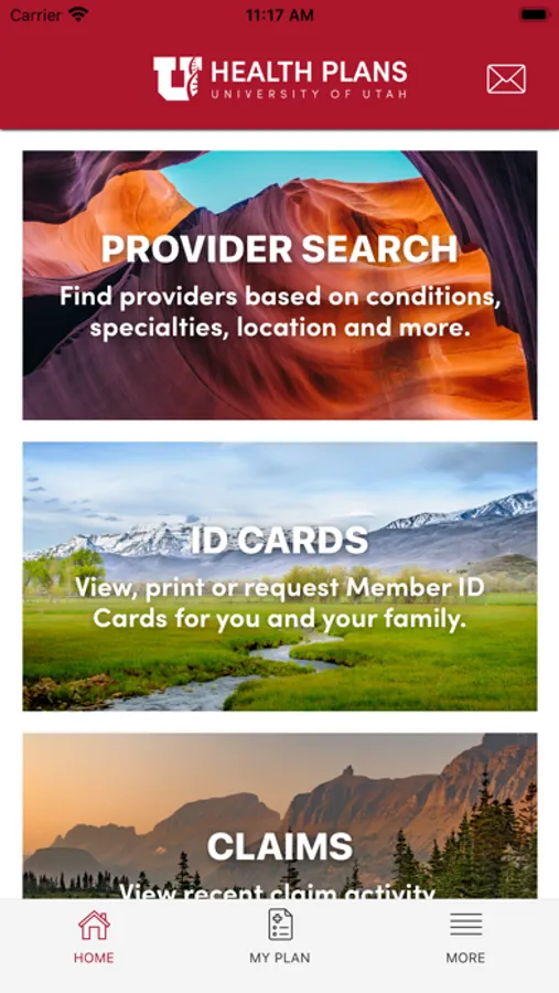The University of Utah Health Plans members have access to their plan details, explanation of benefits (EOB) and pull up their benefit card. With the application, members can search for a providers customized by their network coverage and preferred options.