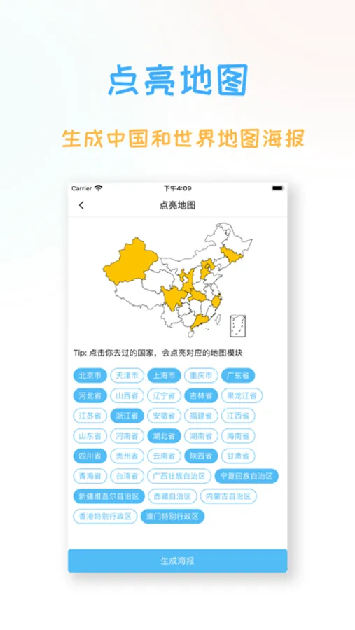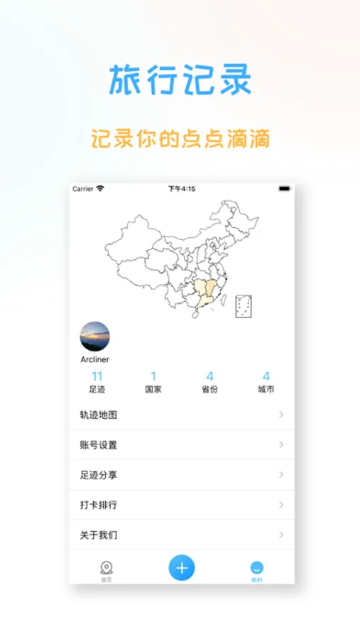 足迹,记录旅行点滴。记录你去了多少个国家、省份、城市。