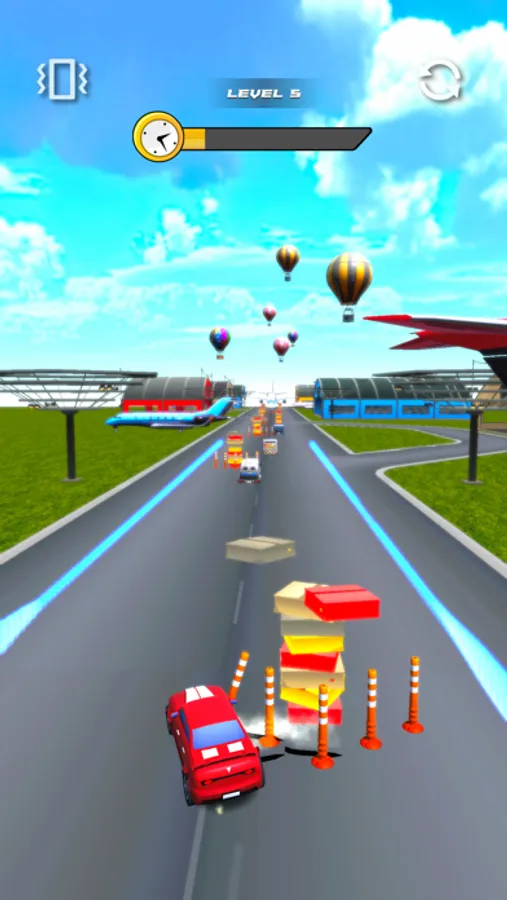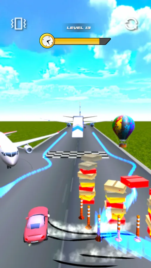 Reach the ramp in time without hitting the obstacles and catch the flying plane.