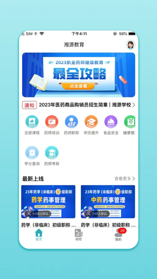 湘源教育学习APP学习平台主要服务:医药食品行业学员在线教育的课程培训、试题练习、药师继续教育和培训交流等功能,实现对学员学习情况的全程跟踪管理和实现对学员的远程教育培训。
