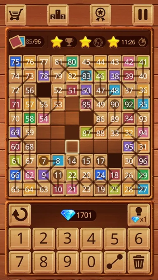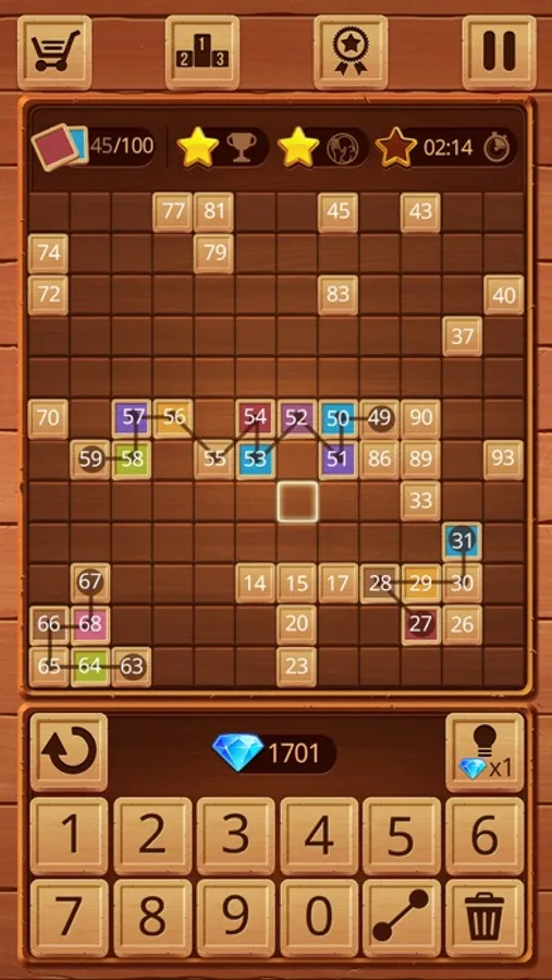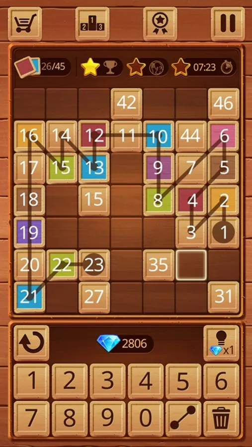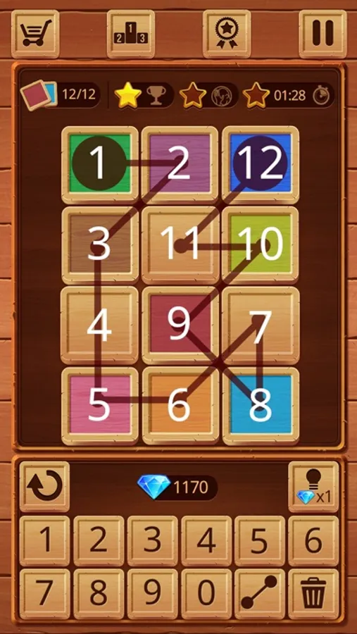 Can you find the correct path to link all numbers in this superb wooden board game? You start with the 1, connecting the 2, then the 3, etc... It's as simple as 1,2,3... It's so relaxiong to play this game and anyone can play it. No worries, puzzles are not too difficult, just enough to make the game fun to play. This game offers you hundred of levels. What are you waiting for to play ? 1,2,3 Get set, go