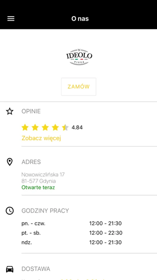 Oprócz zamawiania online aplikacja pozwala sprawdzić: