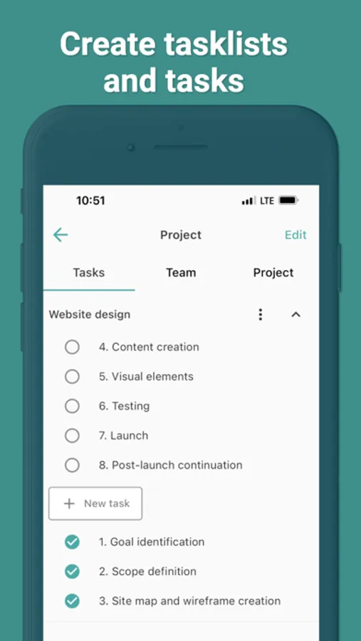 Organize your projects by breaking them down into tasklists and tasks. Prioritize tasks, add details and assign them to your team to complete.