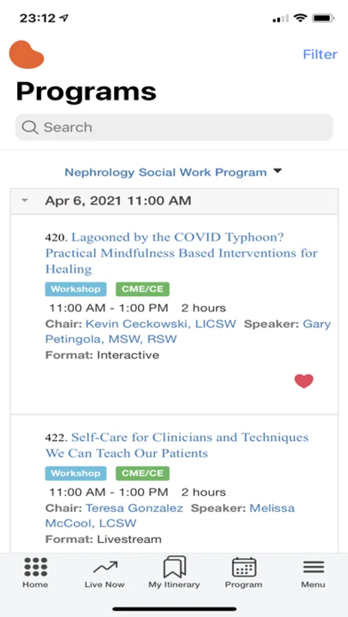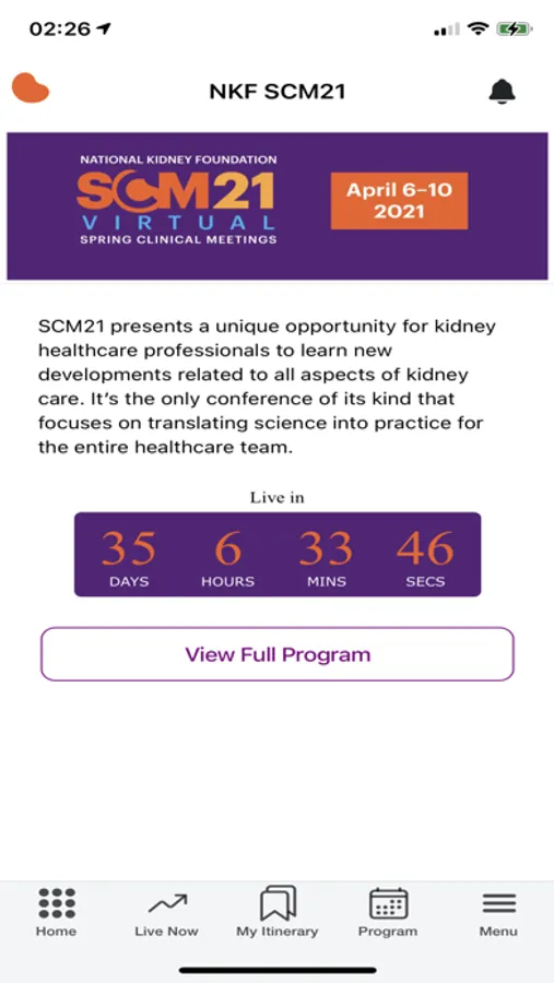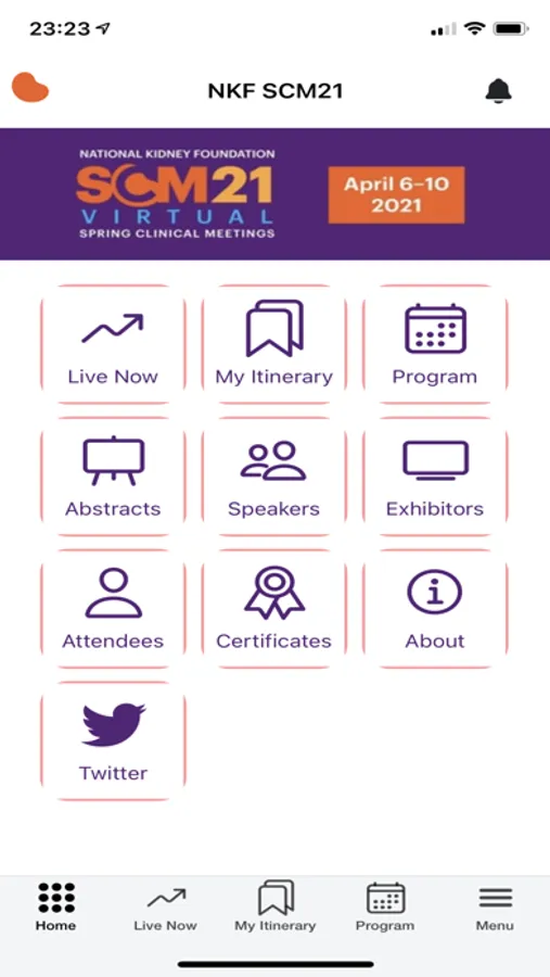 An event app for National Kidney Foundation to manage SCM 21 event. App features include viewing programs, abstracts, speakers, exhibitors and attendees. App also allows managing user profile information such as uploading a profile image. App uses push notifications to inform user of important event updates.