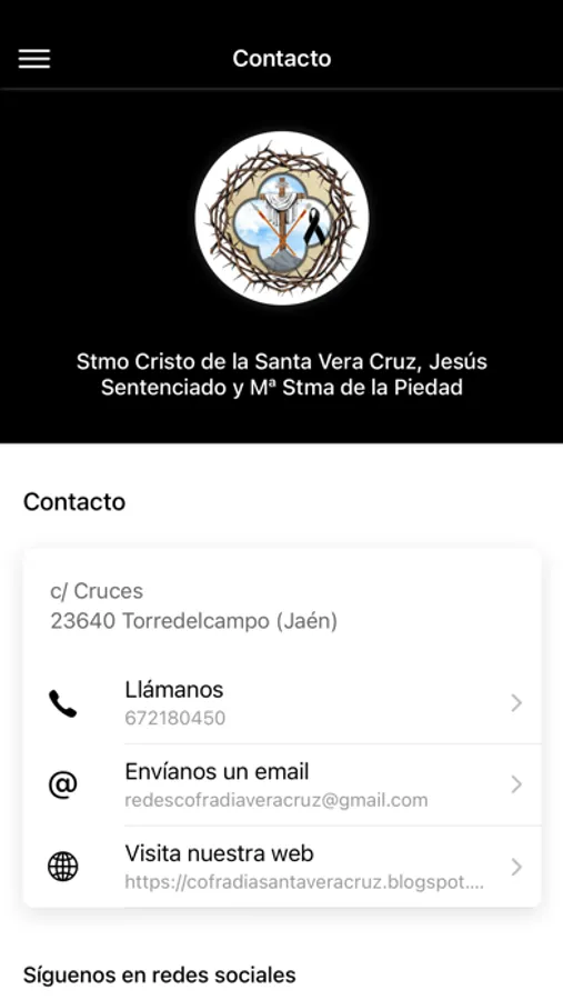 Aplicación Oficial de la Hermandad del Santísimo Cristo de la Santa Vera Cruz, Jesús Sentenciado y Mª Santísima de la Piedad de Torredelcampo, próximas salidas y acceso identificado para los hermanos/as en el que pueden consultar/modificar sus datos personales, consultar recibos y recibir notificaciones de la Cofradía.