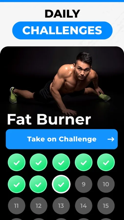 Our algorithm selects a suitable program based on your data (goals, gender, age, height, weight, health limitations) and adjusts it depending on your progress. This distinguishes each day of the program from the previous one. In addition, we have selected over 100 short workouts of varying intensity for the main muscle groups: abs and core, butt, arms, chest.