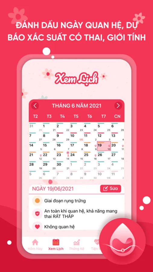 - Hiển thị dự đoán ngày quan hệ dễ có thai, ngày an toàn và không an toàn